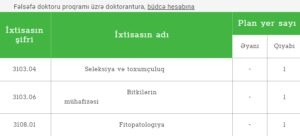 Qəbul aparılan ixtisaslarla aşağıda göstərilib: